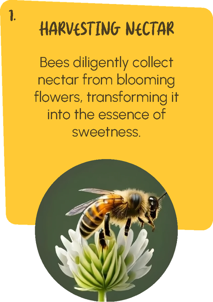 Our honey is made by bees that collect pollen from flowers, ensuring a pure and natural product. This process allows the bees to gather the best nutrients and flavors from each flower, resulting in high-quality honey with a unique taste. By sourcing pollen from diverse flowers, our honey is rich in vitamins, minerals, and antioxidants. Enjoy the benefits of honey made from nature's finest ingredients, collected straight from the heart of India's fields.