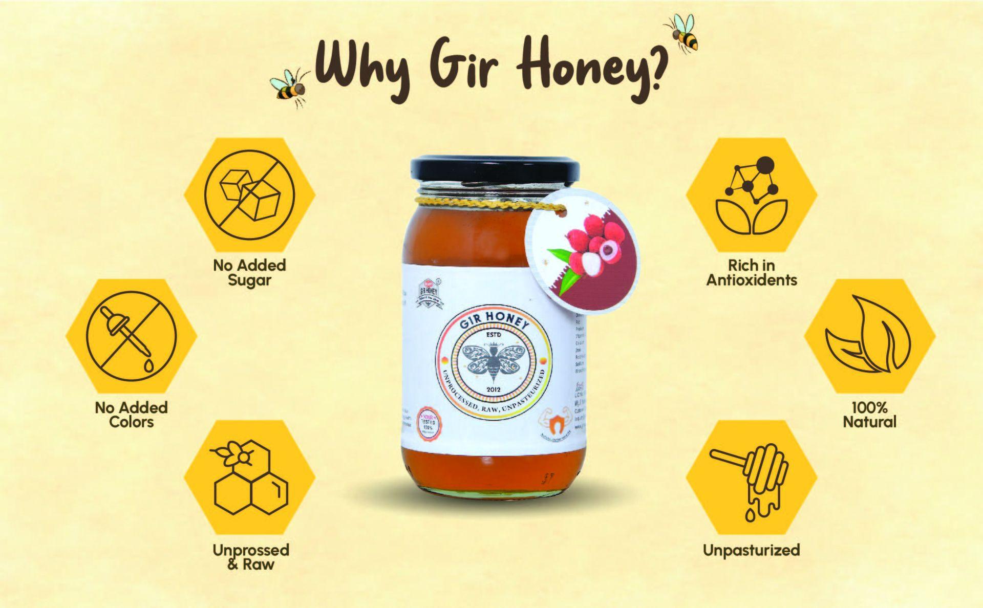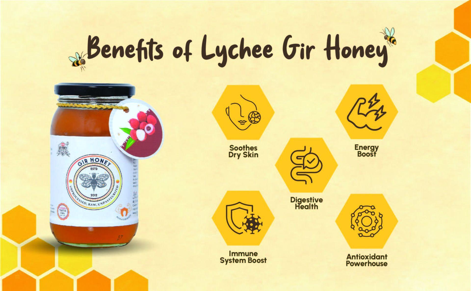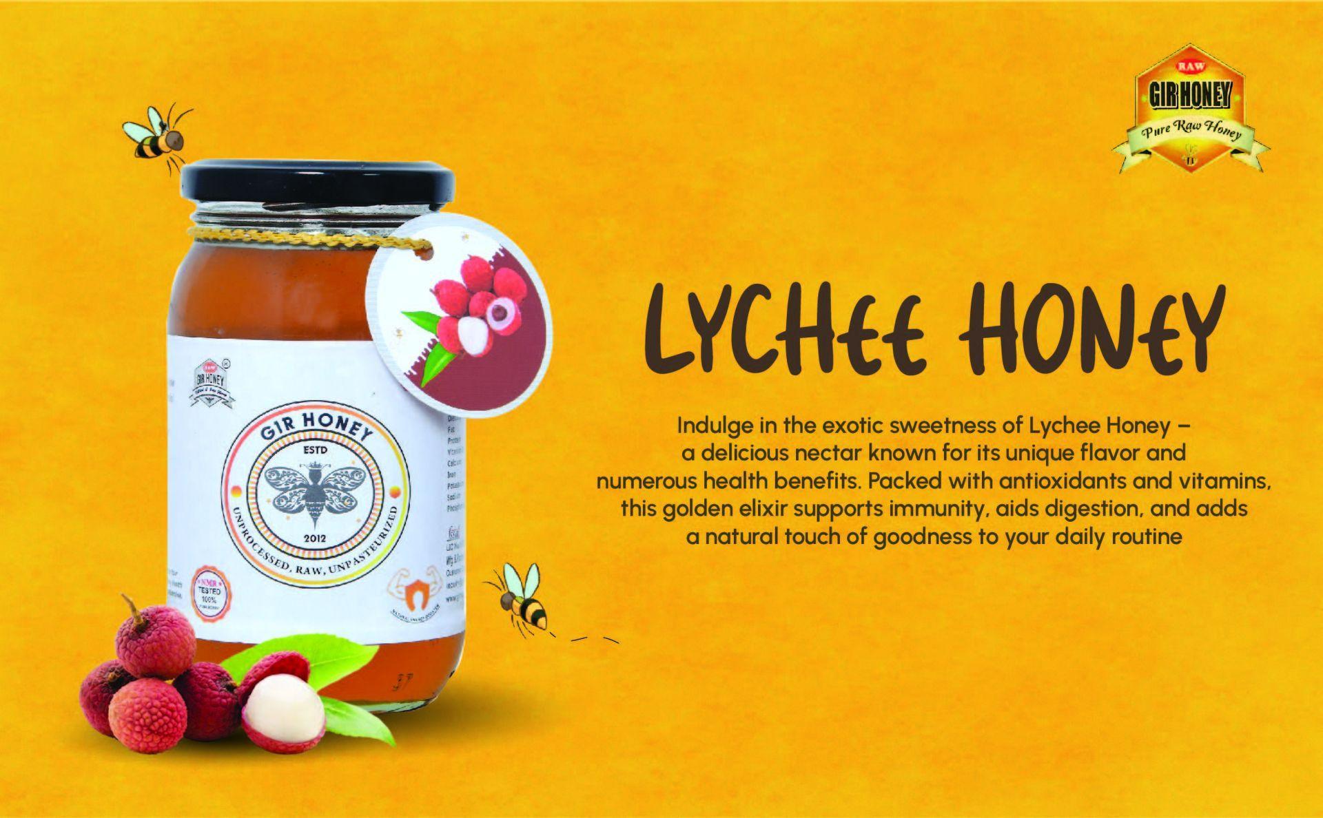 GIR HONEY LYCHEE Organic Raw Honey | NMR Tested 100% Raw & Pure Honey | Unprocessed, Unpasteurized, Unheated & Unadulterated | 500gm Jar